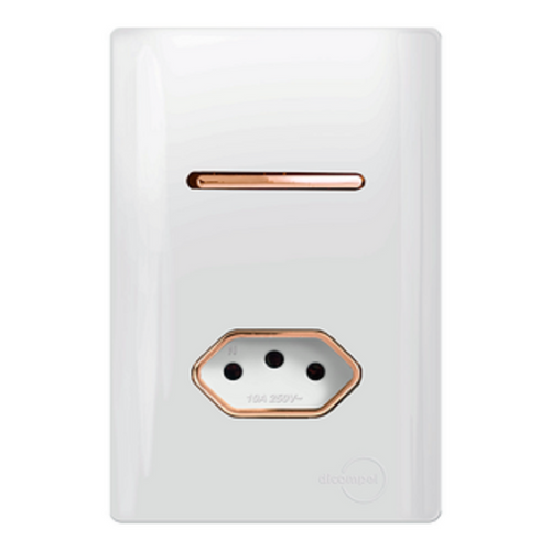 Conjunto 4X4 com 2 Tomadas (1 de 10A e 1 de 20A) - Branco com Cromado -